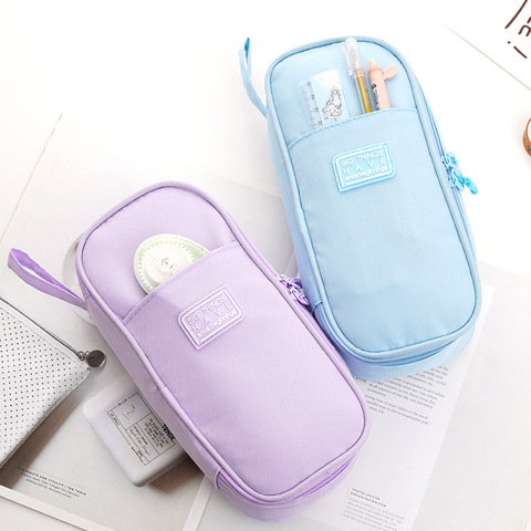 2層ペンシルケースシンプルパステル無地手持ち文房具ボックス,大容量